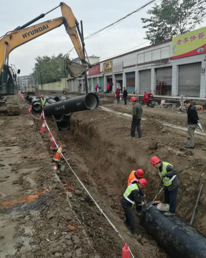 DN800入城输水管道西线工程属于新设计、新规划、新开挖市政工程,涉及穿越傥骆路、站前路、天汉大道、青龙路四条城市主干道,道路作业面狭小、施工交叉工作面大,汉中时值多雨之际,风骤袭人面,旧雨沁骨寒然而在叶家营工地上施工建设却如火如荼的进行汉江供水实业公司在常务副总经理赵小文的带领下,项目管理团队冒着冰雨、顶着寒风,一方面严抓安全生产,一方面严抓施工质量,夜以继日,加班加点,赶着工程节点提前工期完成工程量。西线入城输水管道站前路段打压试验一次性成功,不仅对前期管道安装质量进行了全面检验,而且对后续打压试验积累了经验,同时标志着石门水厂技改工程建设通水目标迈出了坚实的一步。