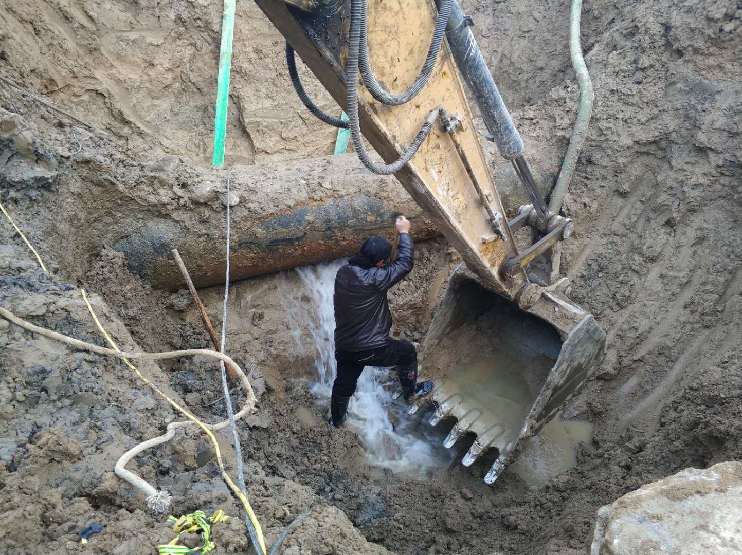 2月4日早,值班领导副总经理方军带领工作人员来到现场,经对漏点仔细勘察,结合城市供水和水厂运行状况,方总当机决定马上组织挖掘机进场作业开挖抢修