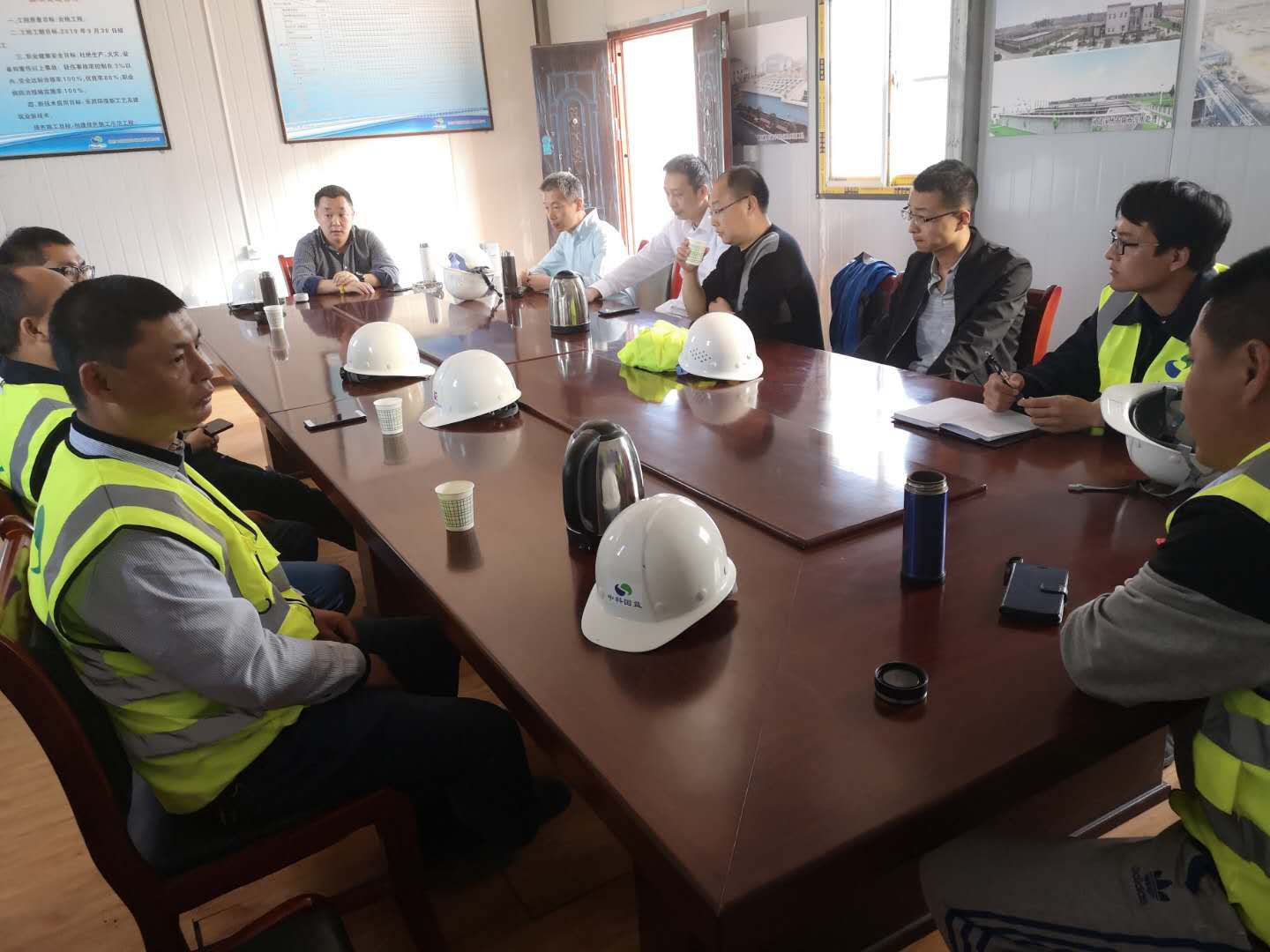 左总对厂区内土建工程和厂区外管网工程做了全面细致的检查,并就个别薄弱环节提出了针对性的指导意见。现场检查完毕后,中科国益管理人员与施工单位就施工进度、安全情况、工程质量等方面召开了项目总结推动会会议上宫总和刘经理对两日来现场检查的结果和问题进行总结,并着重提出针对所述内容的下一步实施计划和具体措施。会上左总对项目管理提出了三点要求:要加快施工进度,科学安排,统筹推进,精心组织施工生产。要认真落实质量为本、安全第一,做好各项安全防护措施,为公司树立良好的品牌形象。要按期优质高效地完成各节点任务目标,确保安全无事故、质量零缺陷,全力打造精品工程、安全工程。