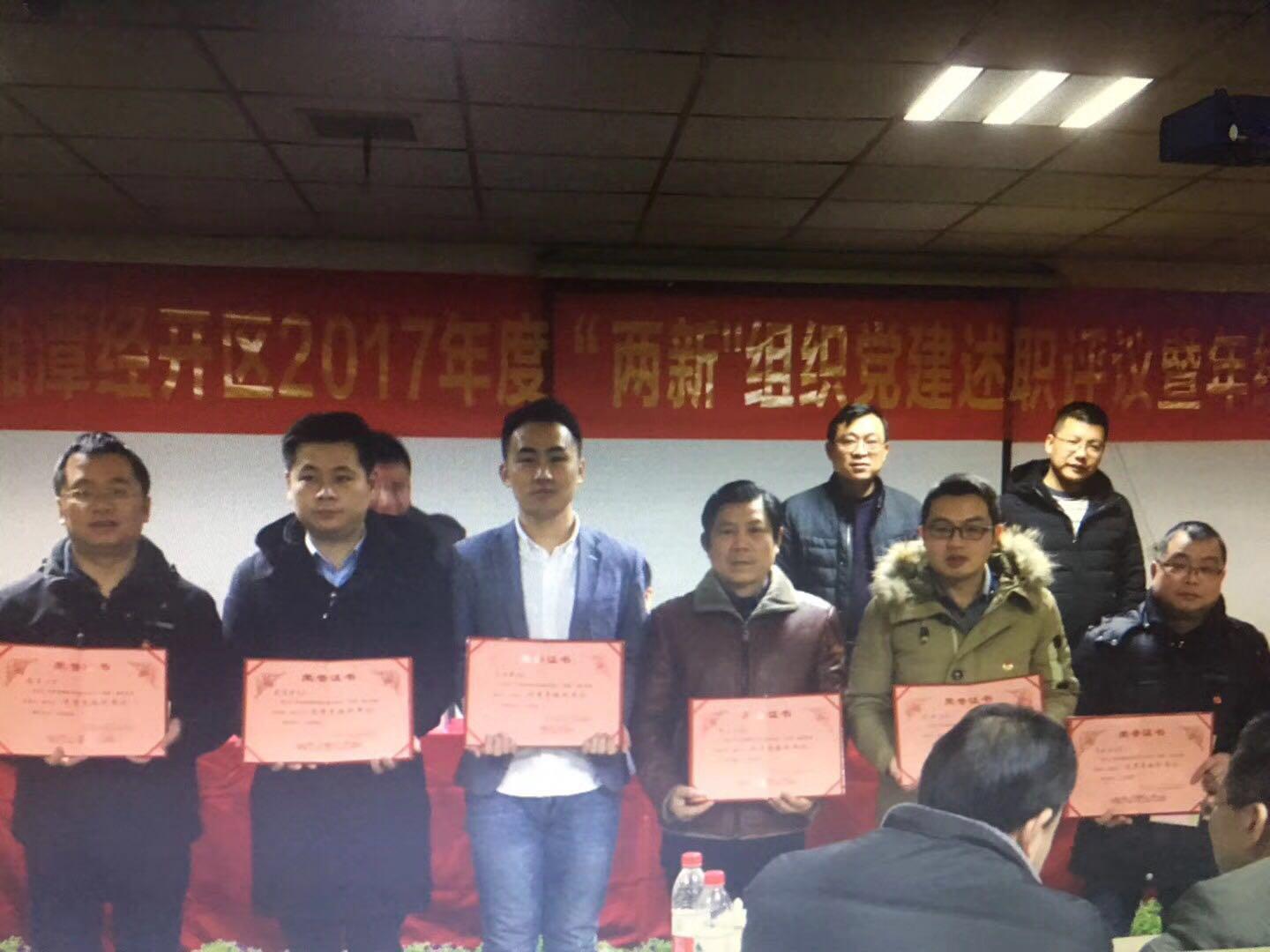 三、湘潭九华经开区召开“两新”党委2017年度基层党建负责人述职评议暨总结表彰大会,湘潭国中水务党支部书记徐毅荣获“优秀党组织书记”。