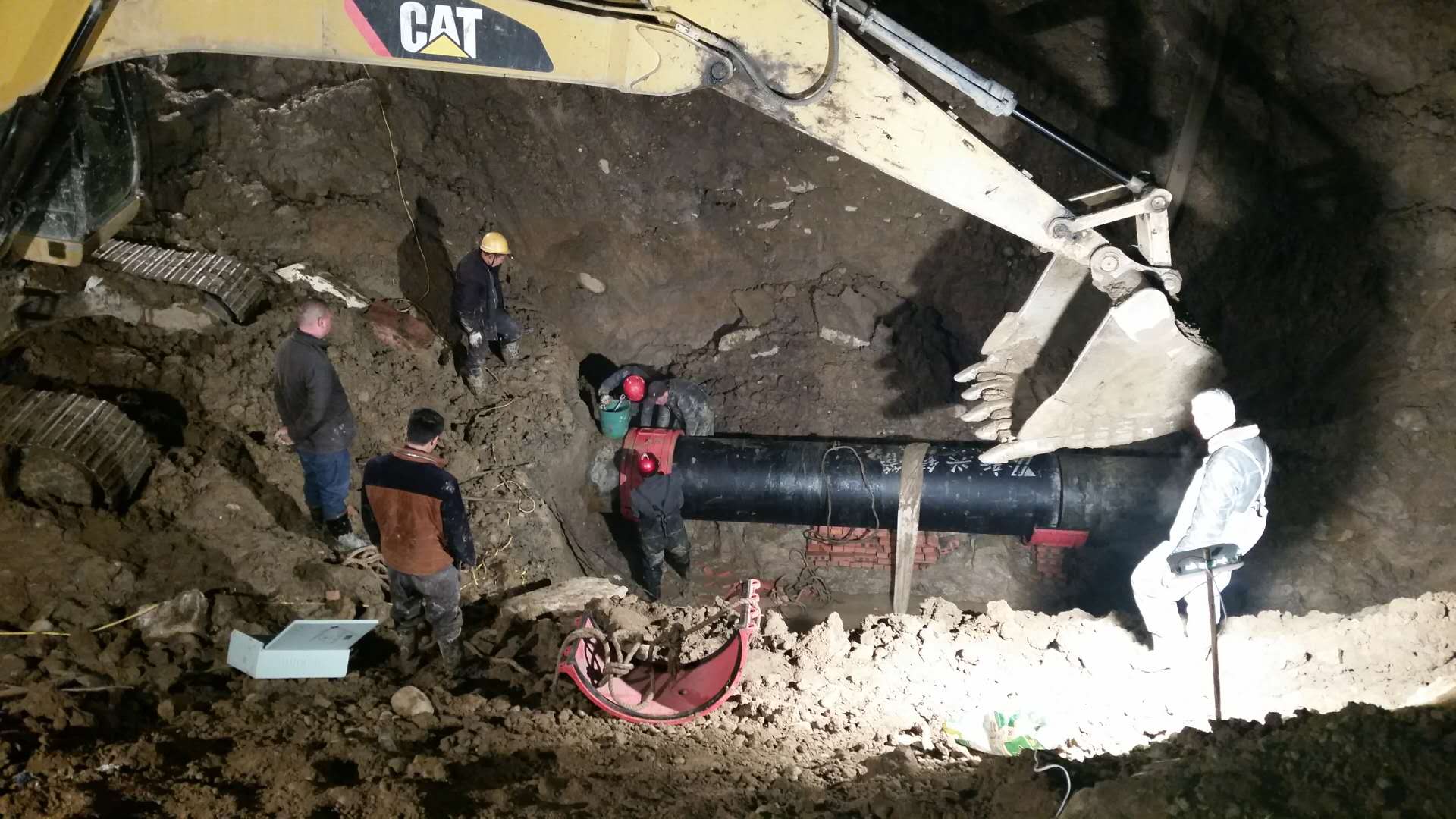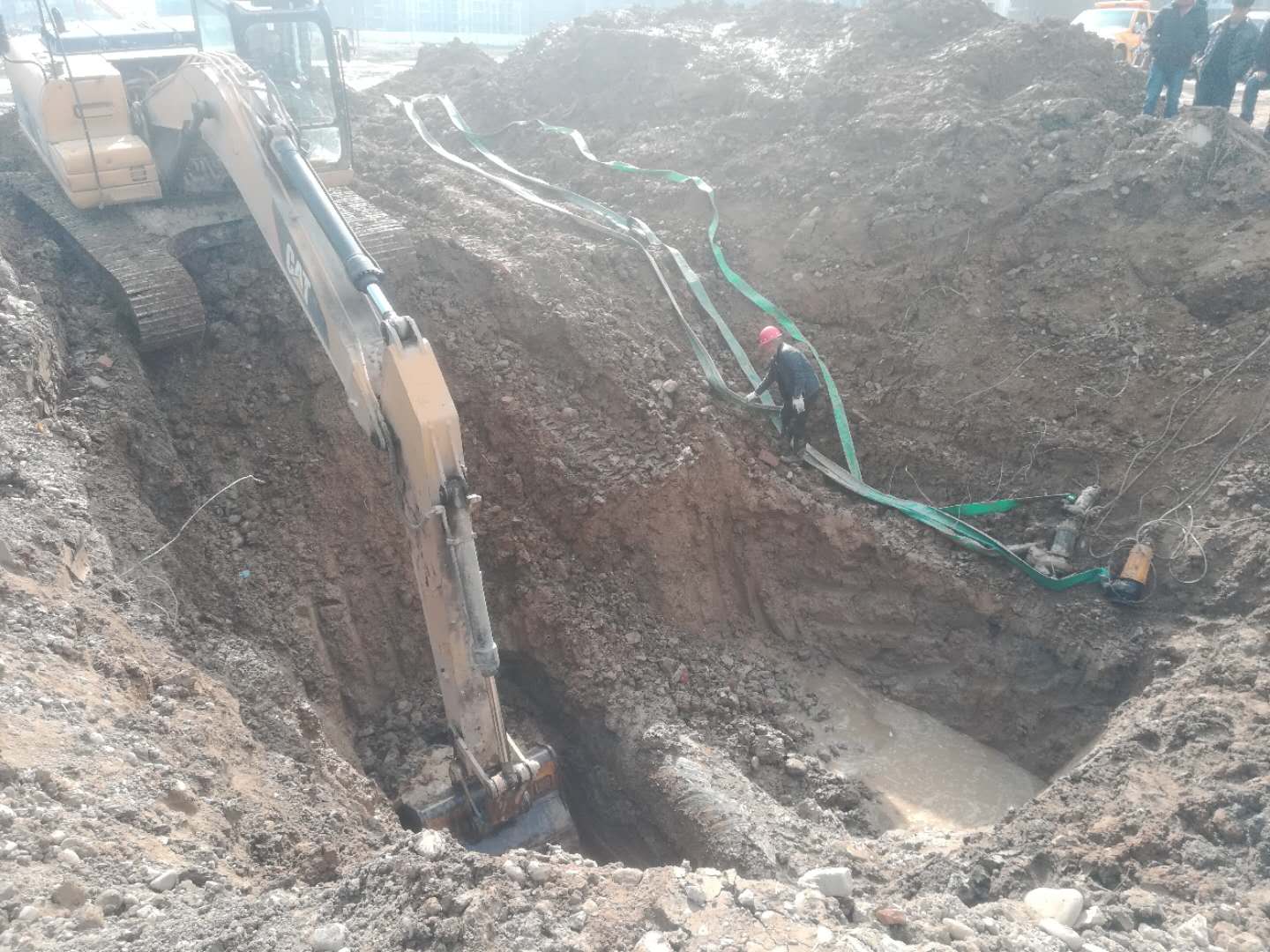 2月4日早,值班领导副总经理方军带领工作人员来到现场,经对漏点仔细勘察,结合城市供水和水厂运行状况,方总当机决定马上组织挖掘机进场作业开挖抢修