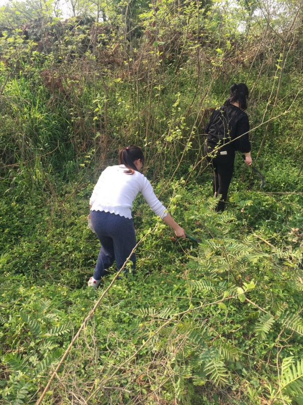 在明确任务分工后,这支热情高涨的队伍就迅速投入到了战斗中,有的砍除杂树杂草,有的将杂草整理堆放,有的清理地面上的垃圾。