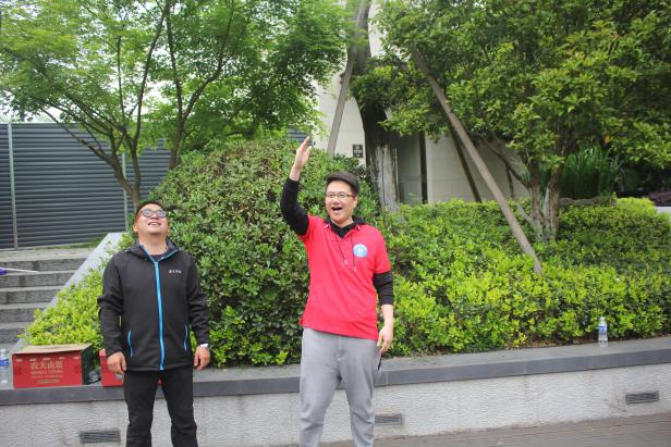 拓展训练从亮剑行动开始,所有国中人身着统一的红色T恤以高涨的热情围抱成环,我手在你肩,你手搭我膀,一起弯腰一同起身,坚固的“长城”在起起伏伏中没有一丝破绽。俗话说,我们的队伍没有弱者,团队的力量从不让任何一个人落下,相信自己、相信队友、相信国中的队伍坚不可摧。