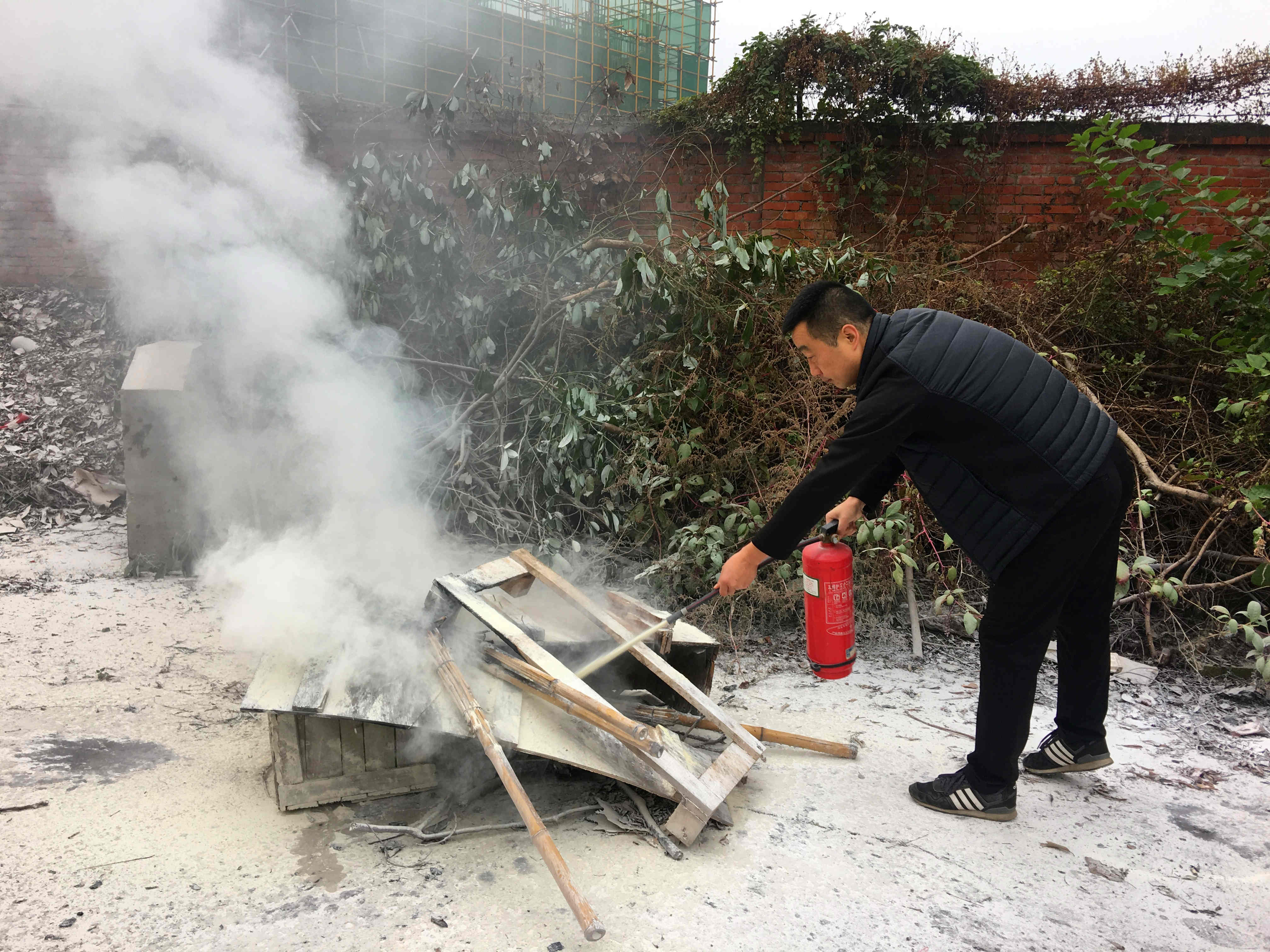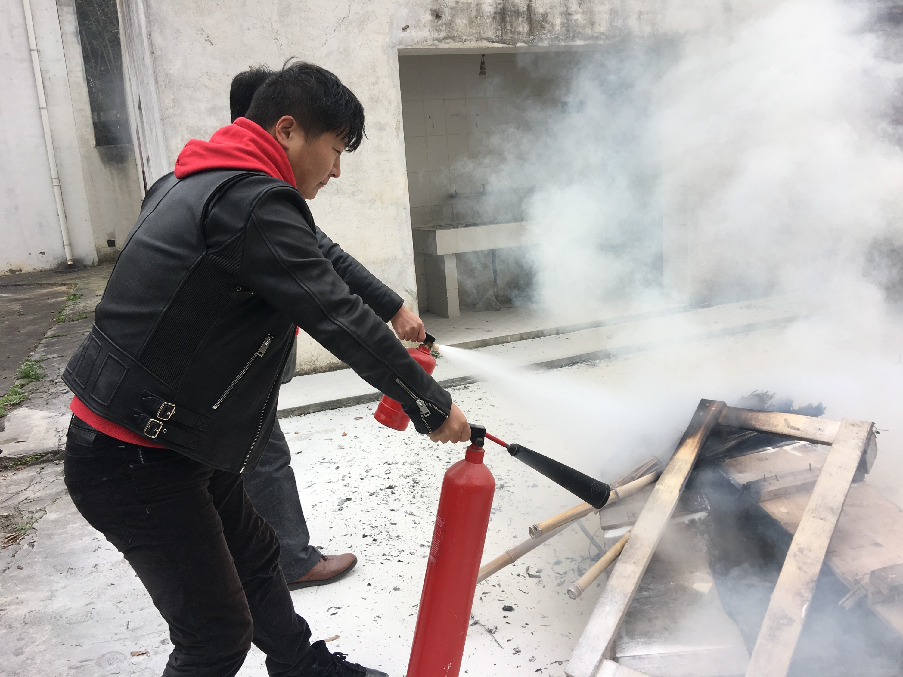 在消防知识培训和消防实战演练活动中,参加培训的公司专职安全员和兼职安全员集体学习了公司安全生产管理制度、公司安全重点防范部位情况及安全管理知识,了解了公司配备的灭火器材的种类、数量和分布情况。培训老师全面讲解了消防安全常识和消防器材正确使用方法,让大家对火灾的预防、灭火器材的分类和正确使用有了全面的了解和掌握。在培训老师和公司专职安全员的指导下,安全员们快速掌握了干粉灭火器、二氧化碳灭火器、211灭火器的使用方法及现场灭火有关事项后,每个人都拿起了灭火器,按照灭火器的使用方法:拔安全销——紧握喷头——对准模拟火灾目标——压紧阀门,只见一股干粉狂喷到“着火点”的目标,迅速地灭掉火源。培训活动从理论知识的宣讲,到实际操作演练,让参加培训的每个人真正地掌握了安全自救技能。