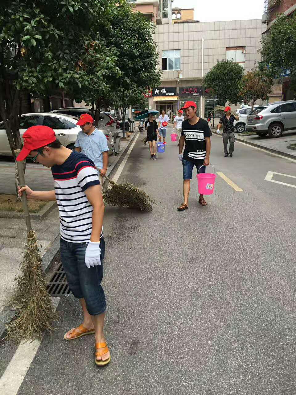 一、参加九华经开区万人大清扫活动,希望通过自己的一份努力,让湘潭创文取得成功。虽然天气非常炎热,但大家的工作效率很高,2~3人分成一个小组,各有分工,互相配合,赢得了社区居民的赞赏。