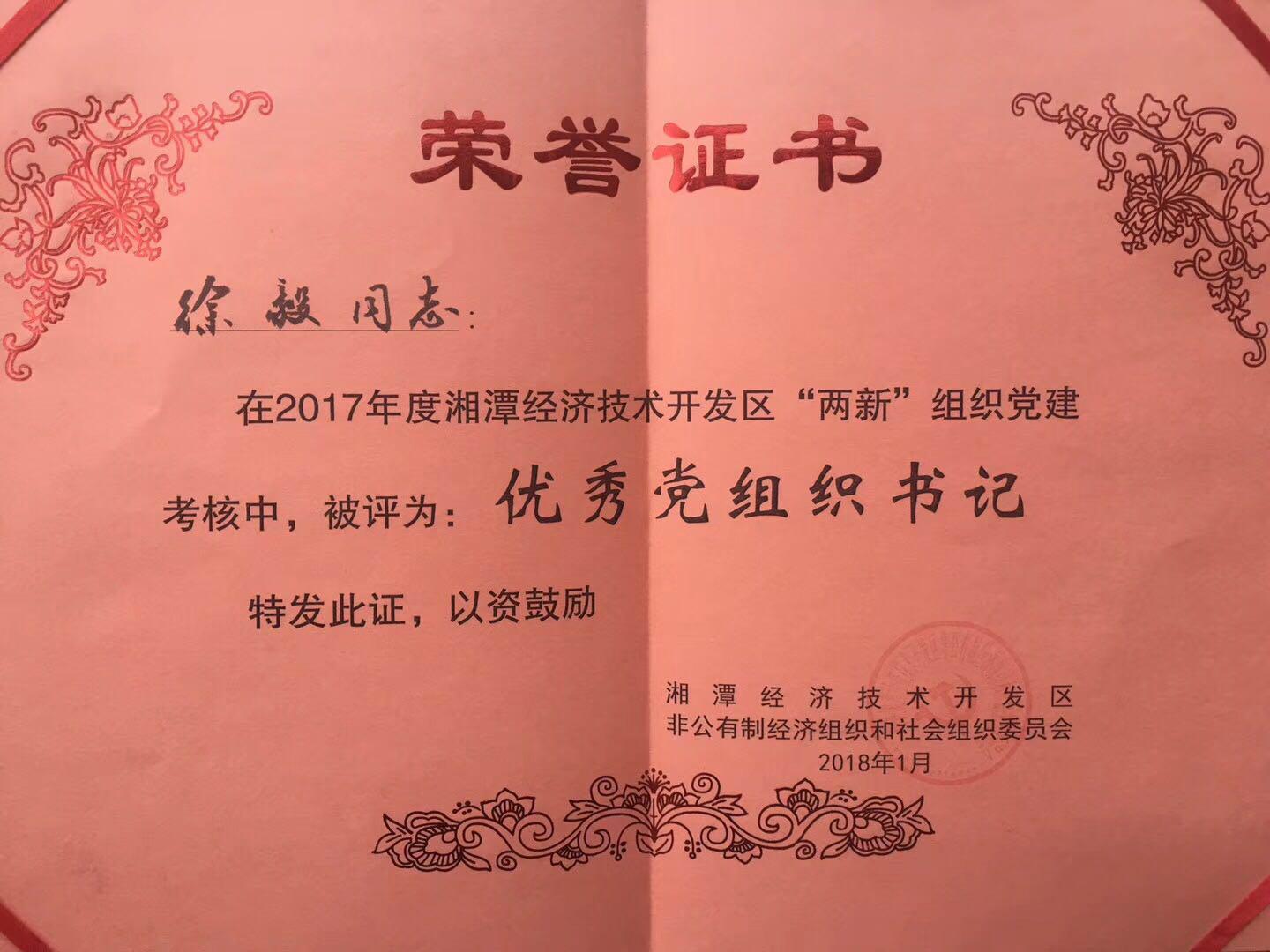 三、湘潭九华经开区召开“两新”党委2017年度基层党建负责人述职评议暨总结表彰大会,湘潭国中水务党支部书记徐毅荣获“优秀党组织书记”。